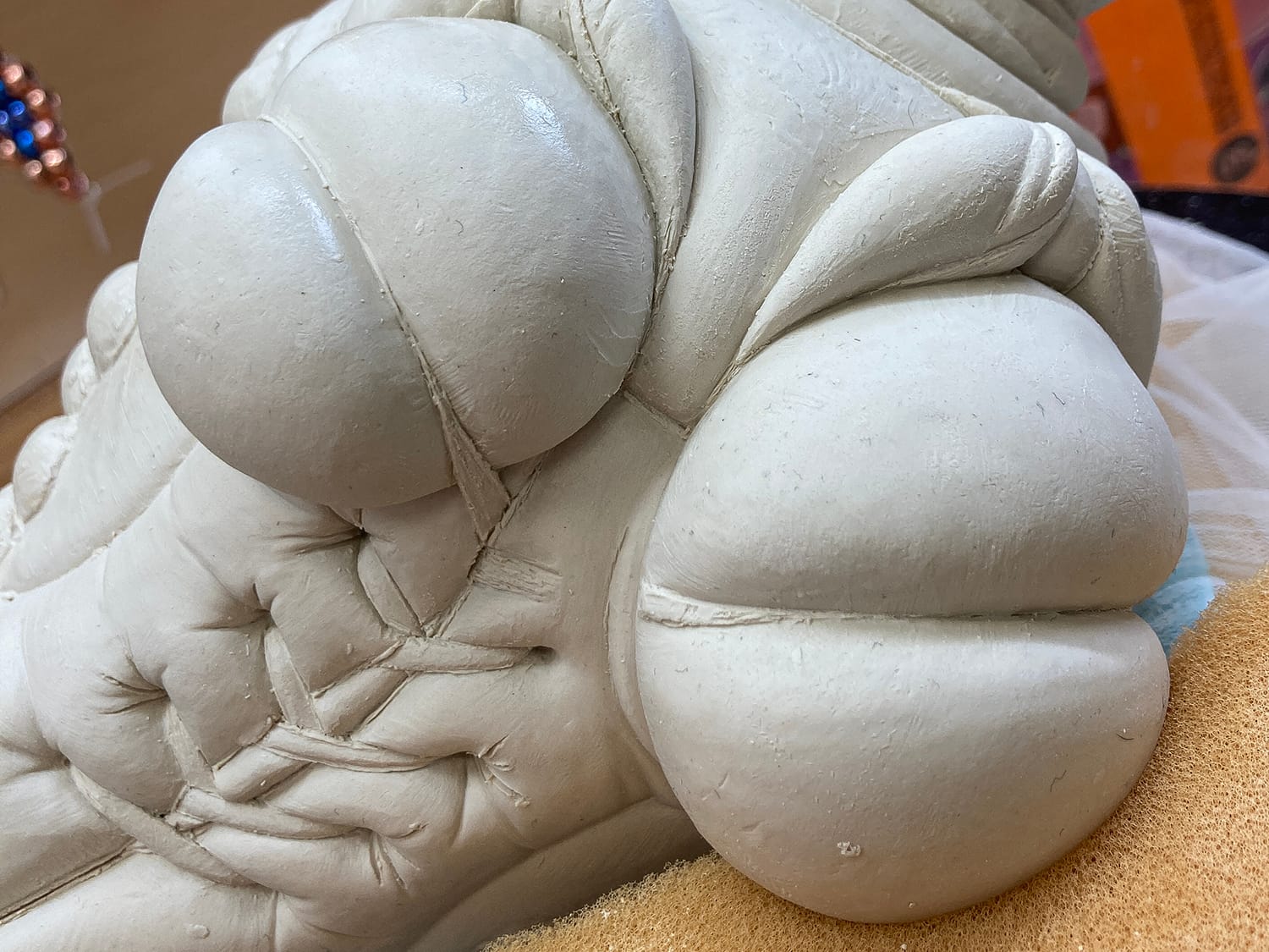 the small “pegs” are stainless steel bearings–referencing a button in the tuft of a sofa. Meagan worked part-time at Blair’s Upholstery for several years. a mysterious coincidence. occasionally I fill an orifice with soft fleshy rubber. people are told not to touch, but they do anyway. pervs.